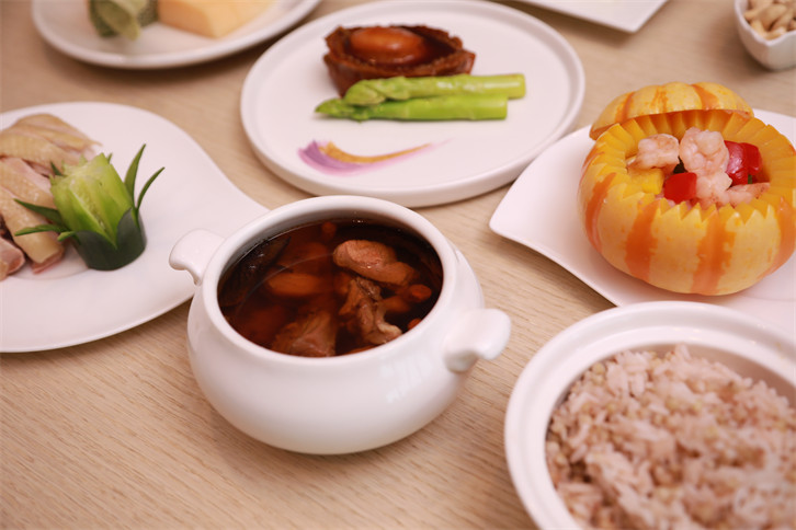 月子會所的資深營養師團隊、頂級廚師團隊打造“清-調-補-養”四階段餐食配方,做到26天一日六餐私人定制(主食、主菜、副菜、點心、飲品、水果),同時還提供各類湯茶,打造科學營養的月子餐,做到寶媽只發奶不發福,讓坐月子像一場美食旅行。